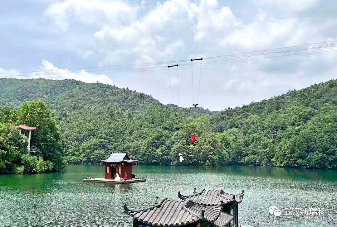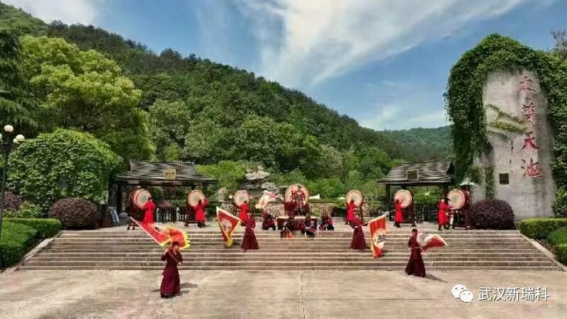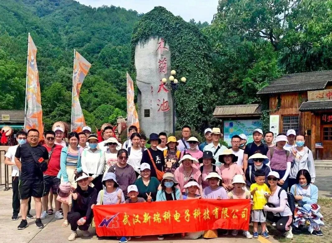 木兰天池,海拔约450米,景区年平均气温介于15-22℃之间,七月份平均气温25.8℃,素称“湖北的九寨沟”—— 新瑞科全体决定在七月酷暑中去征服它。